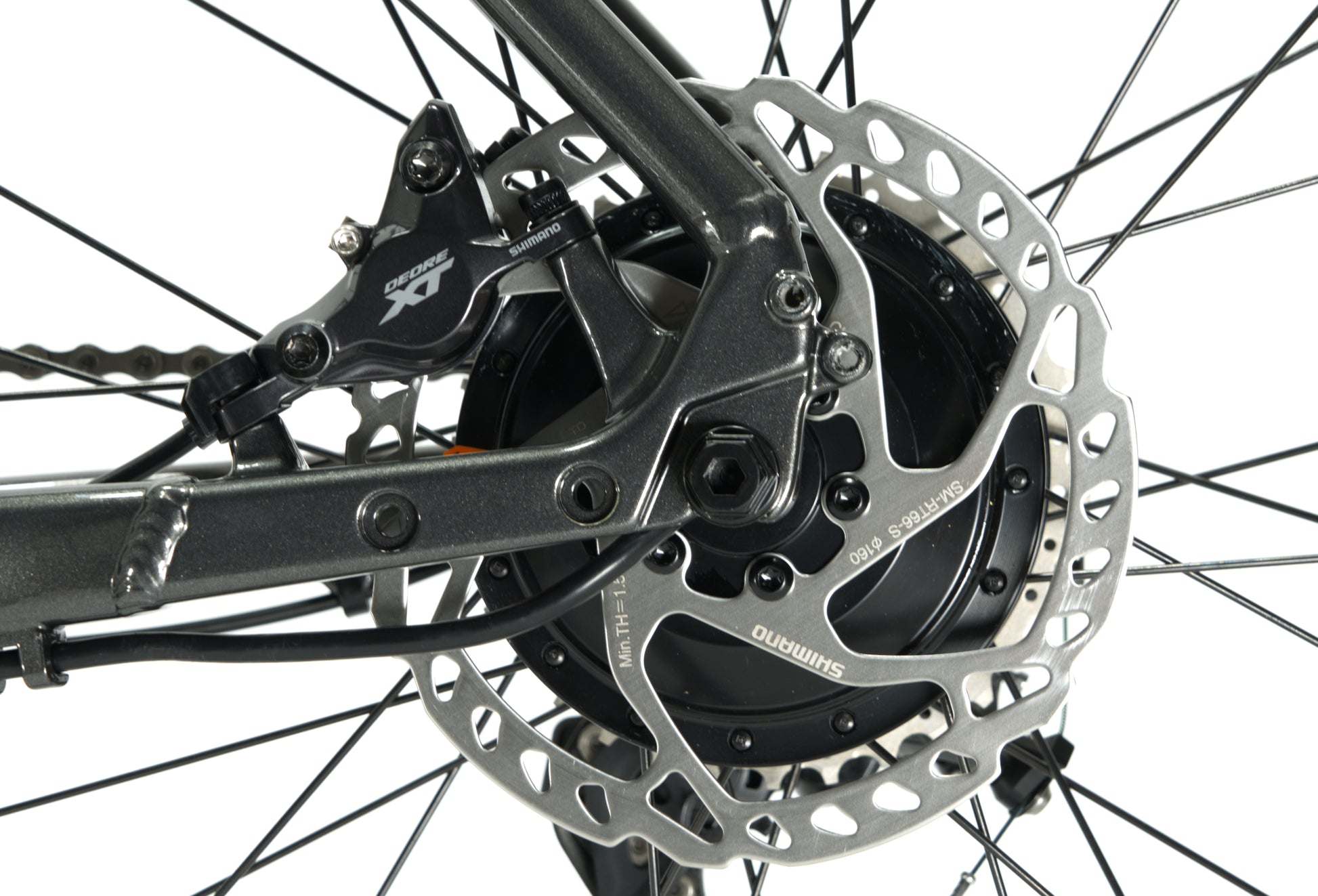 Die hochwertige Shimano Scheibenbremse besticht durch ihre Zuverlässigkeit in den Momenten, wo es darauf ankommt. Die Shimano XT-Schaltung ermöglicht maximale Flexibilität beim Fahren.