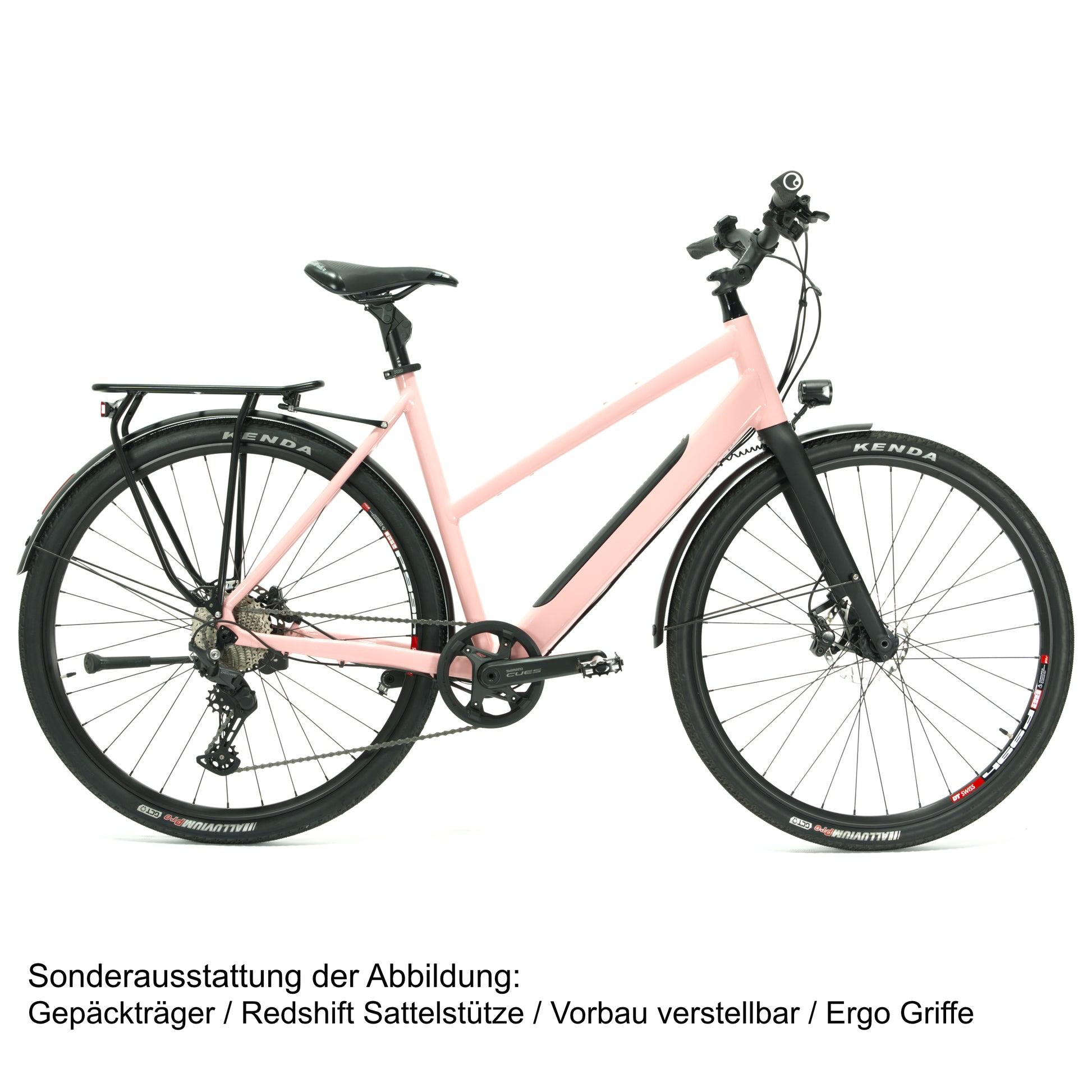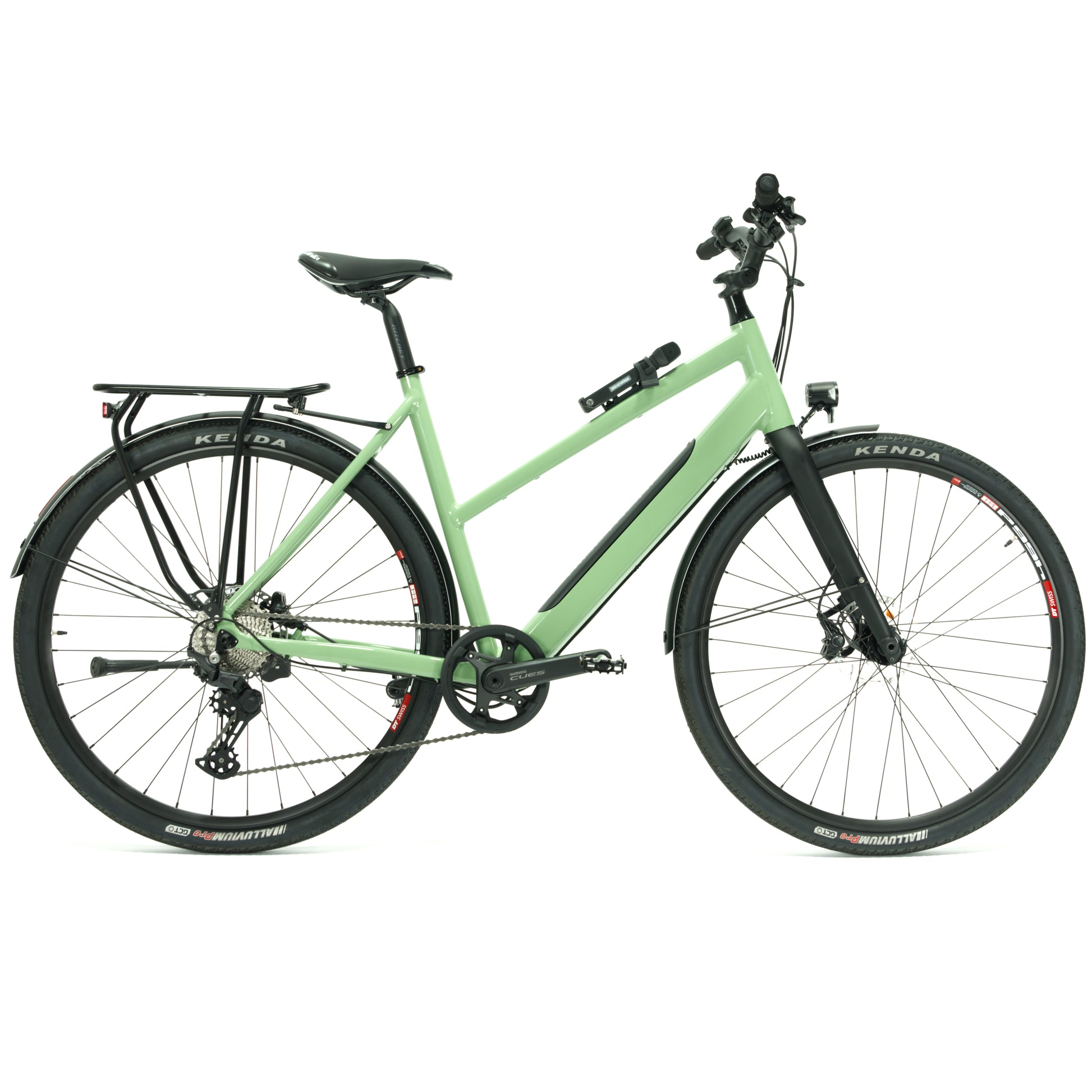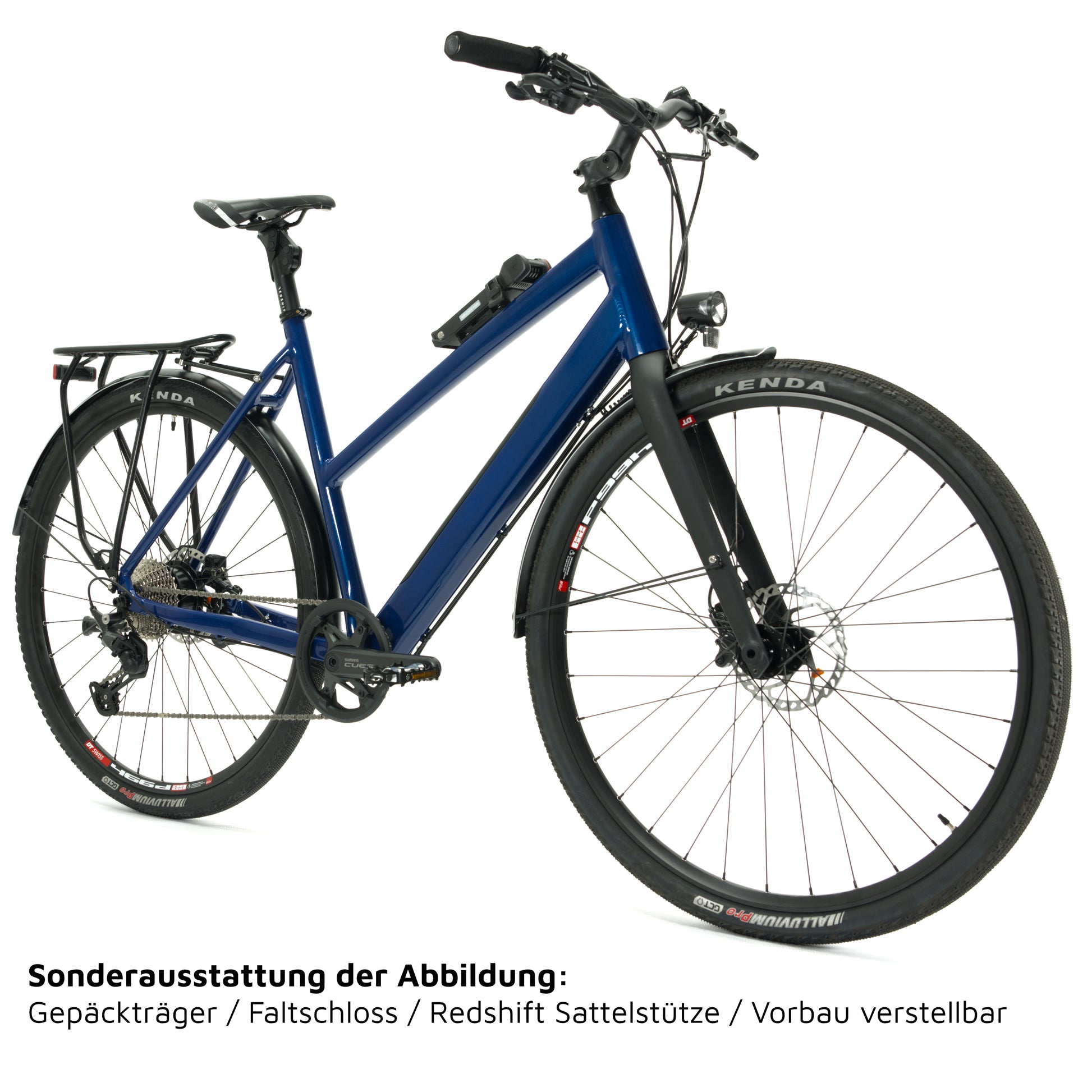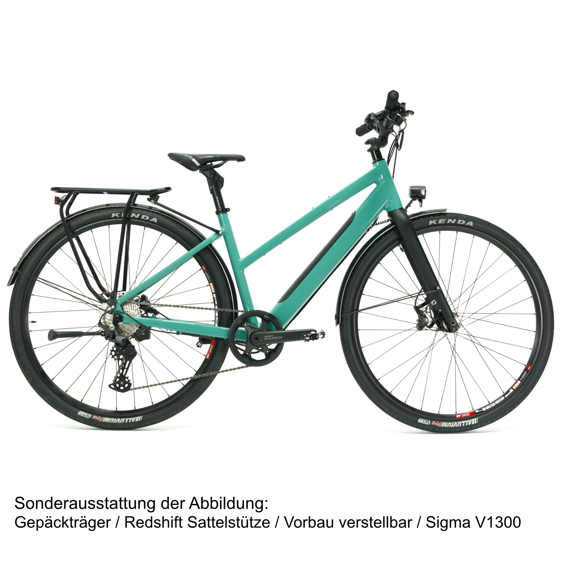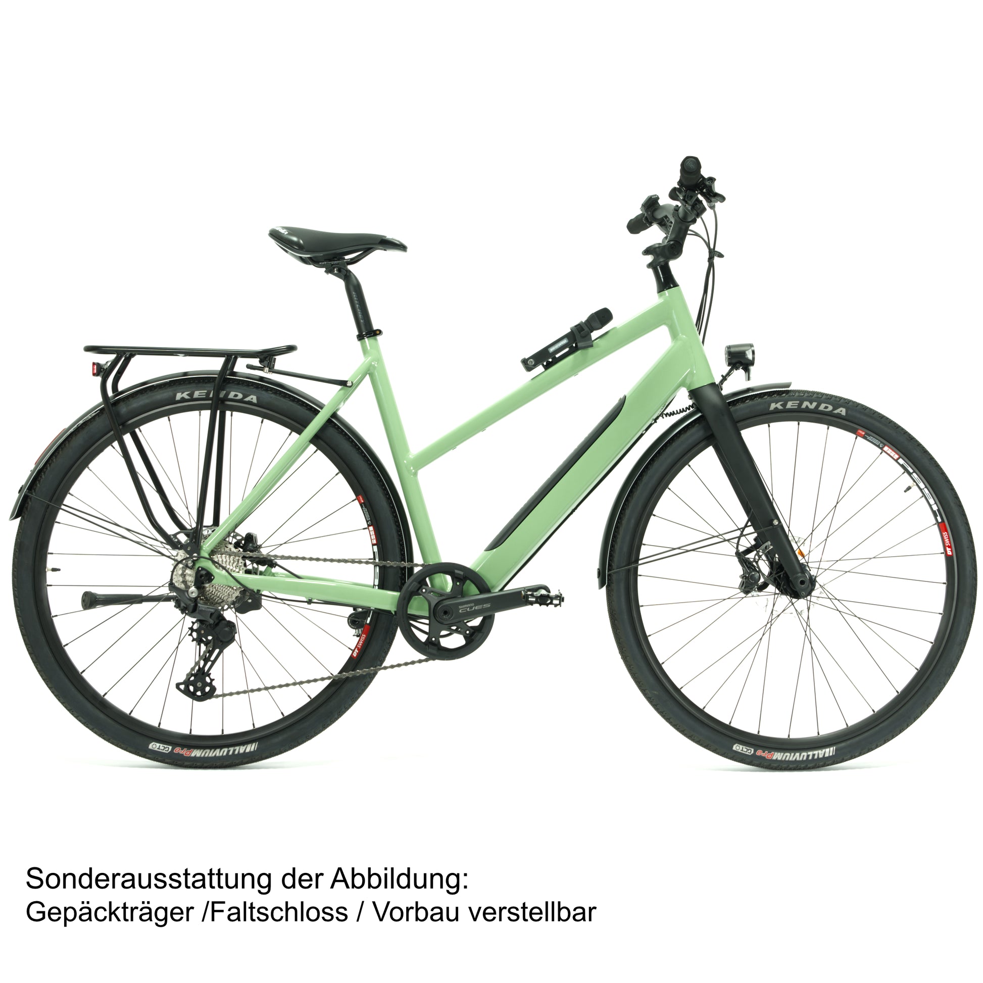 Sicherheit steht an erster Stelle: Die Shimano Deore BR-T6000 Scheibenbremsen bieten zuverlässige Bremskraft bei jedem Wetter. Die Kenda Alluvium Reifen (40-622) garantieren erstklassigen Grip und Fahrkomfort auf unterschiedlichsten Untergründen. Zusätzliche Stabilität und Schutz bietet das Curana Schutzblech, das auch das Busch + Müller Rücklicht integriert – ergänzt durch das leistungsstarke Herrmans MR8 Vorderlicht für beste Sichtbarkeit.