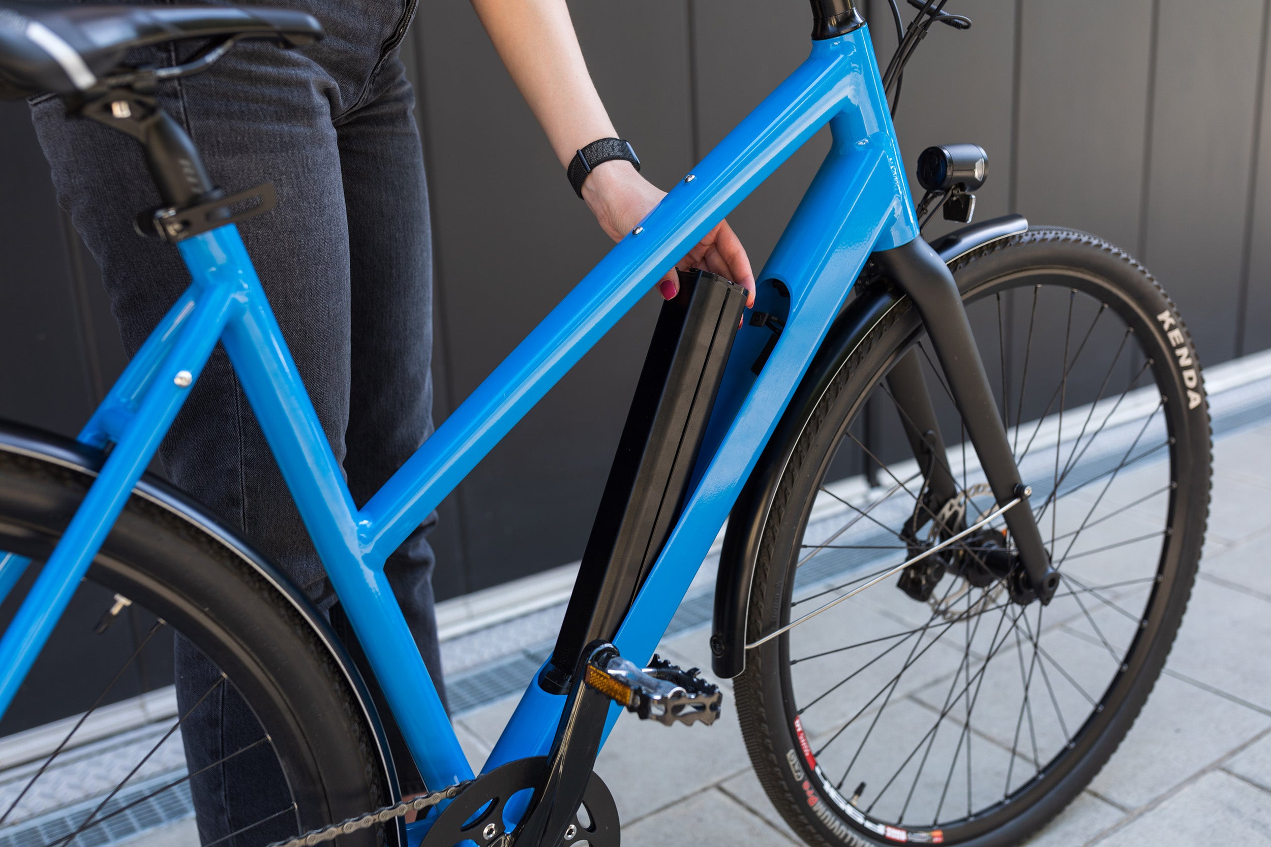Die schlanke Akkueinheit besteht aus der neusten Generation Lithium-Ionenzellen und ermöglicht Reichweiten von durchschnittlich 60 km. Unser Akku kann in wenigen Sekunden entnommen werden und bequem in der Wohnung geladen werden.
